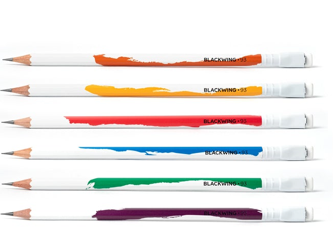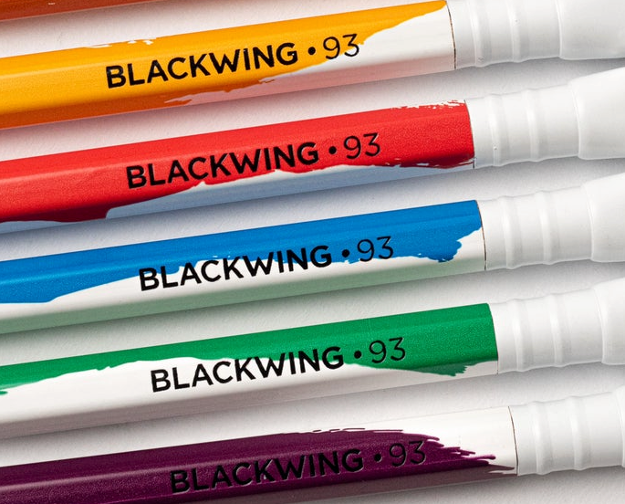 The Blackwing 93 is a tribute to Corita and her message to slow down and find gratitude in the everyday. Each pencil features one of the six colorful brushstrokes that make up Corita’s iconic rainbow swash. Commissioned in 1971, the rainbow swash adorns a 140-foot-tall natural gas storage tank along Interstate 93 in Dorchester, Massachusetts. The pencils contain our soft graphite and each set includes two of each color design.
