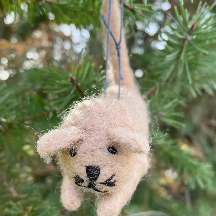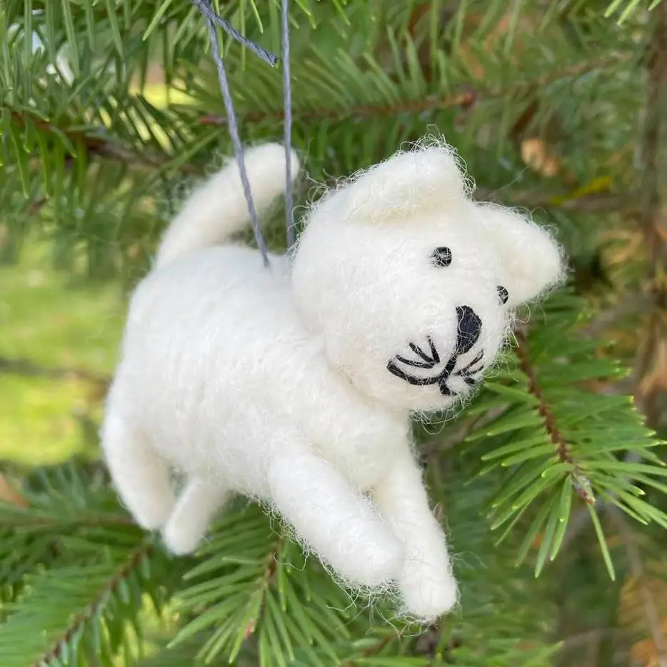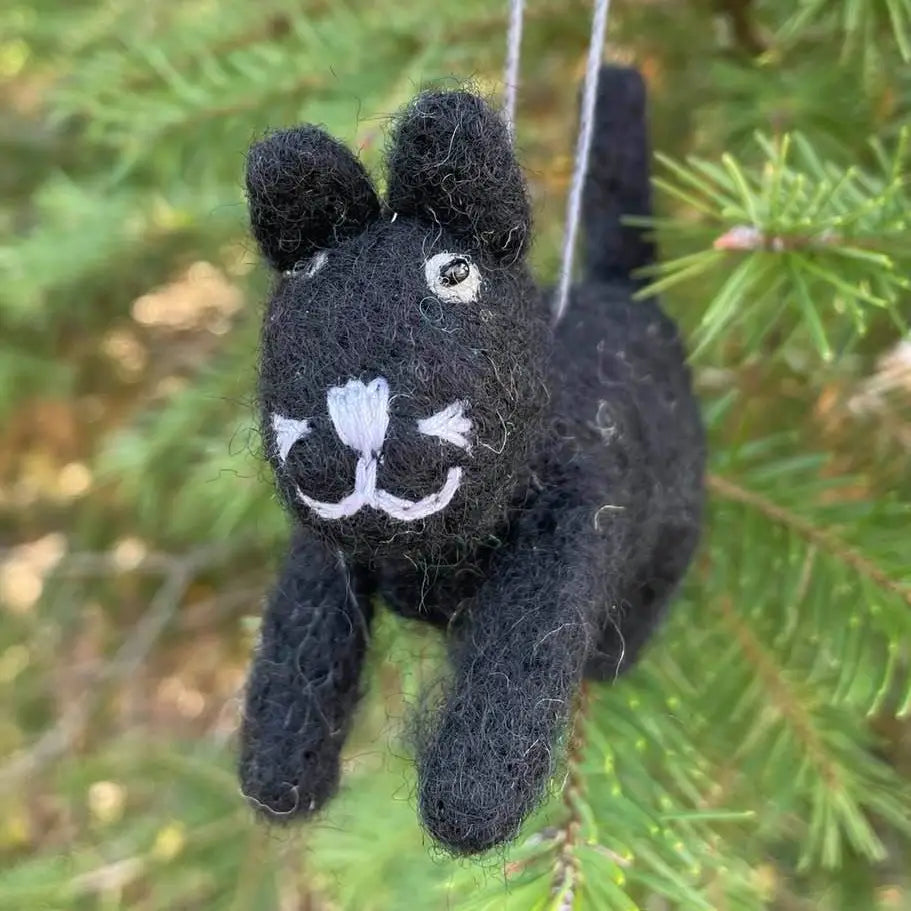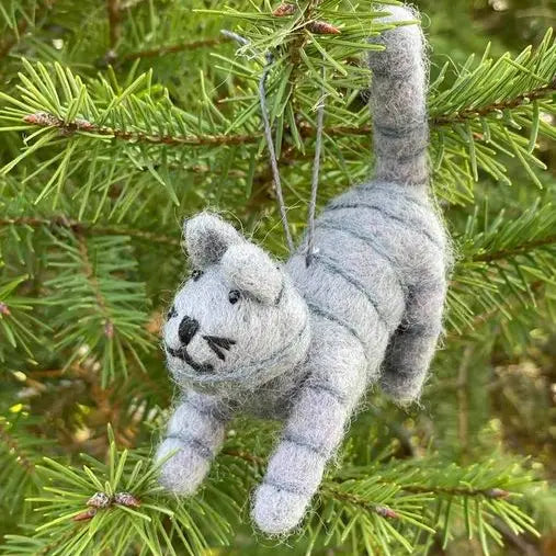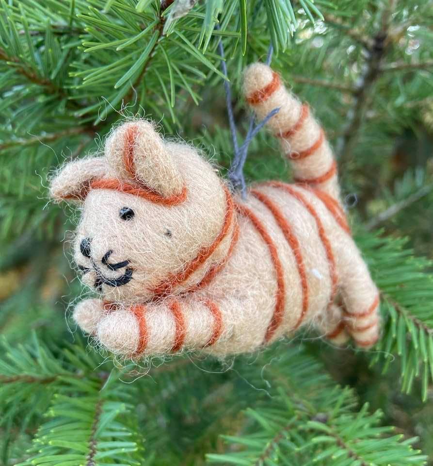 Fair trade felt cat ornament, hand felted wool, made in Nepal.