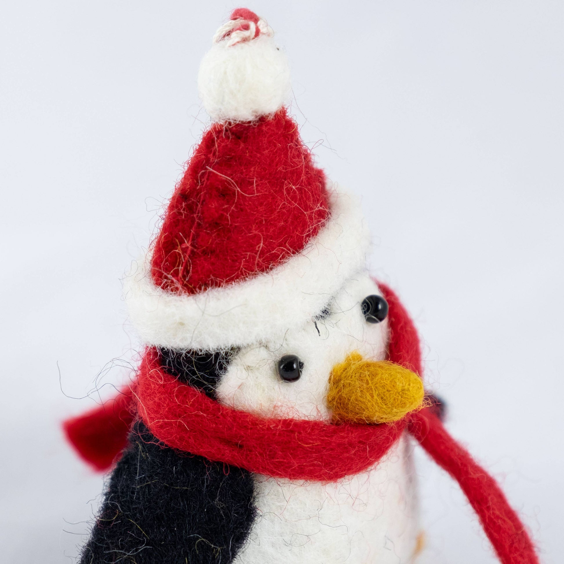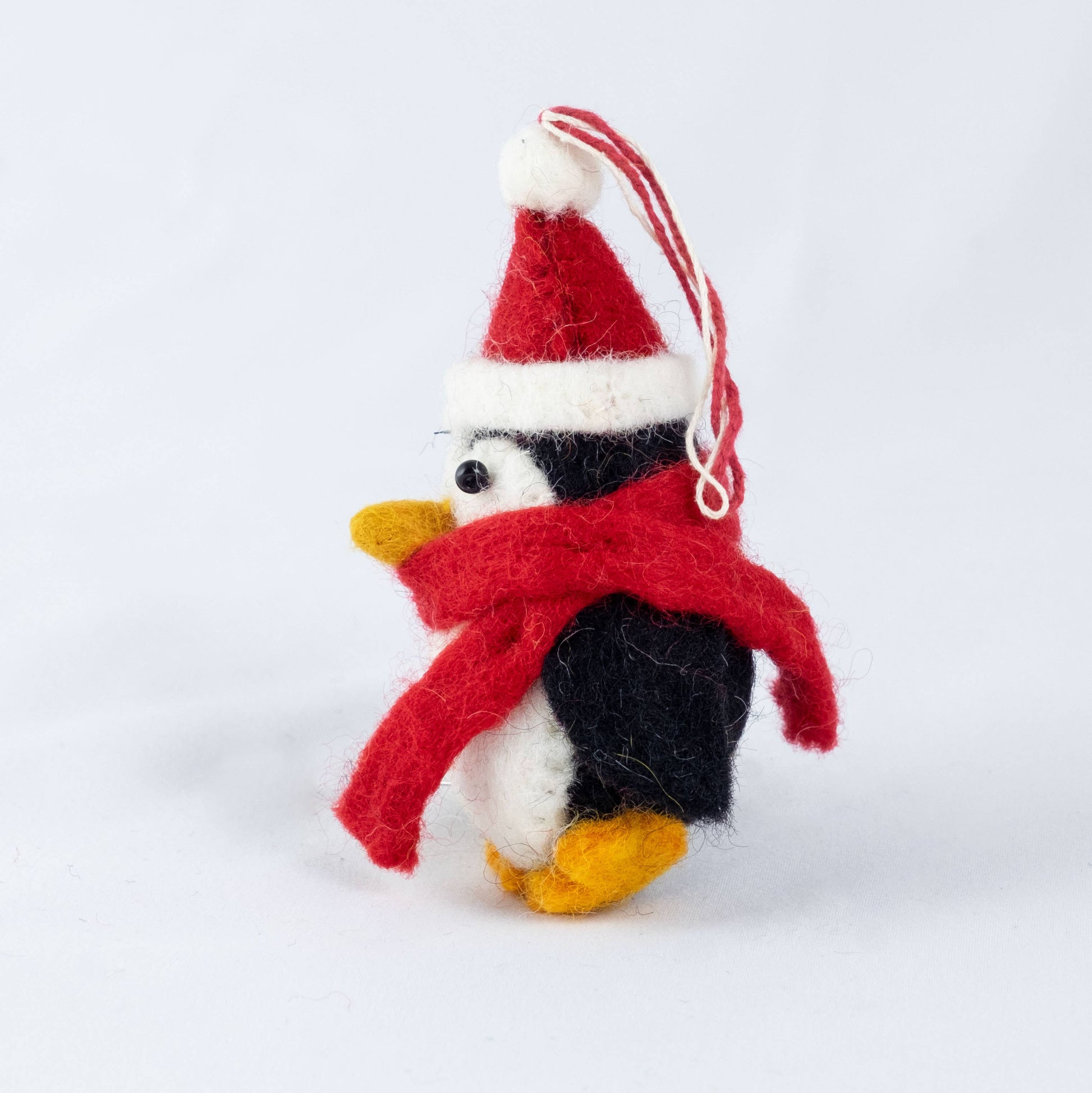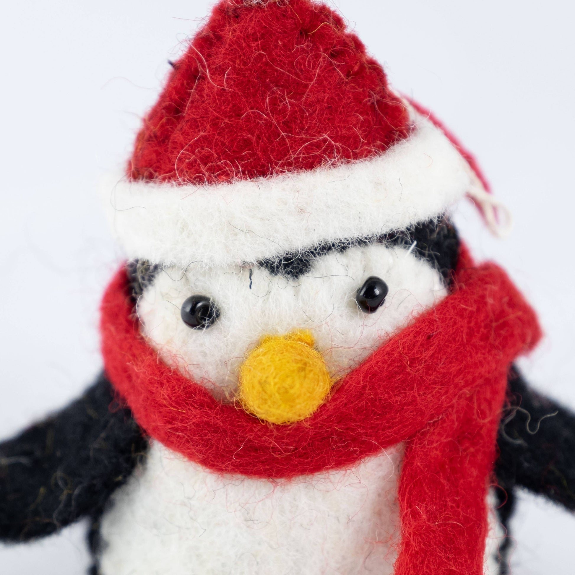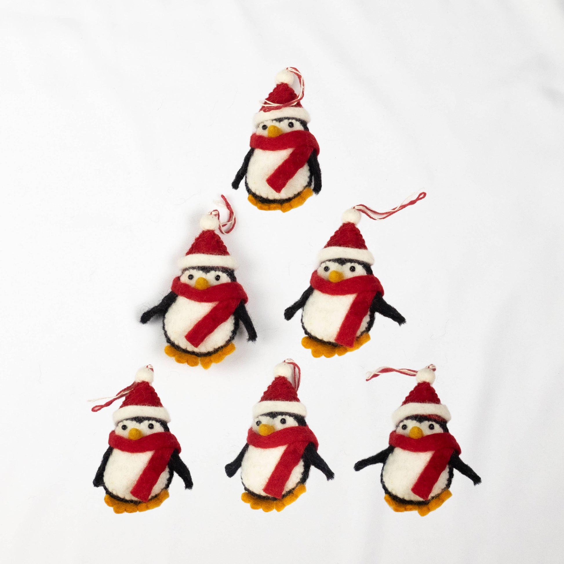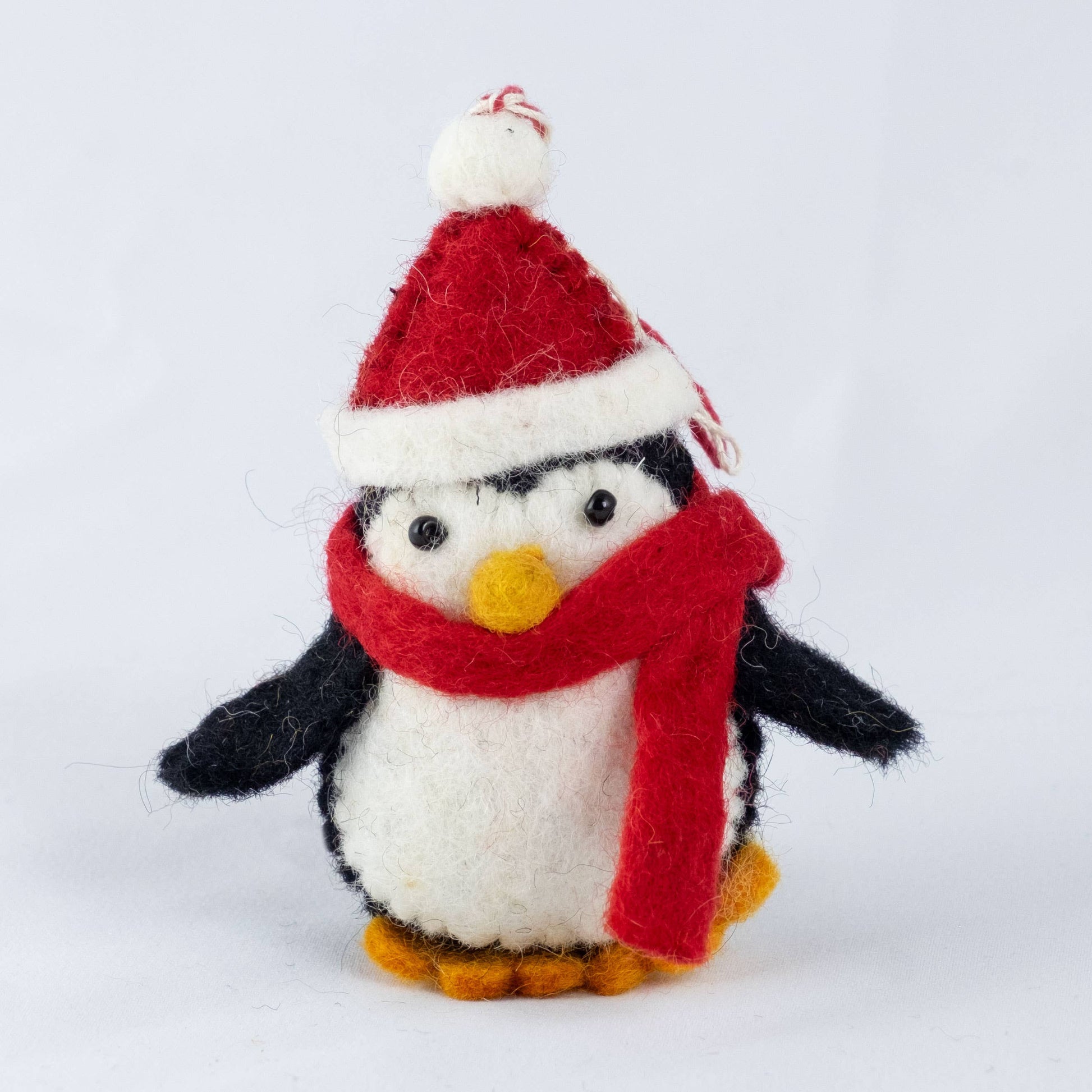 Cute little Felt Penguin Ornaments with Santa Hat. Perfect for the Christmas Tree or Holiday Decor. Put them out in a basket for impulse purchase can retail for $10-$12 ea. Hand made in Nepal in our small family owned workshop. We take a portion of our profits to pay school tuition for 3 of our workers' kids.