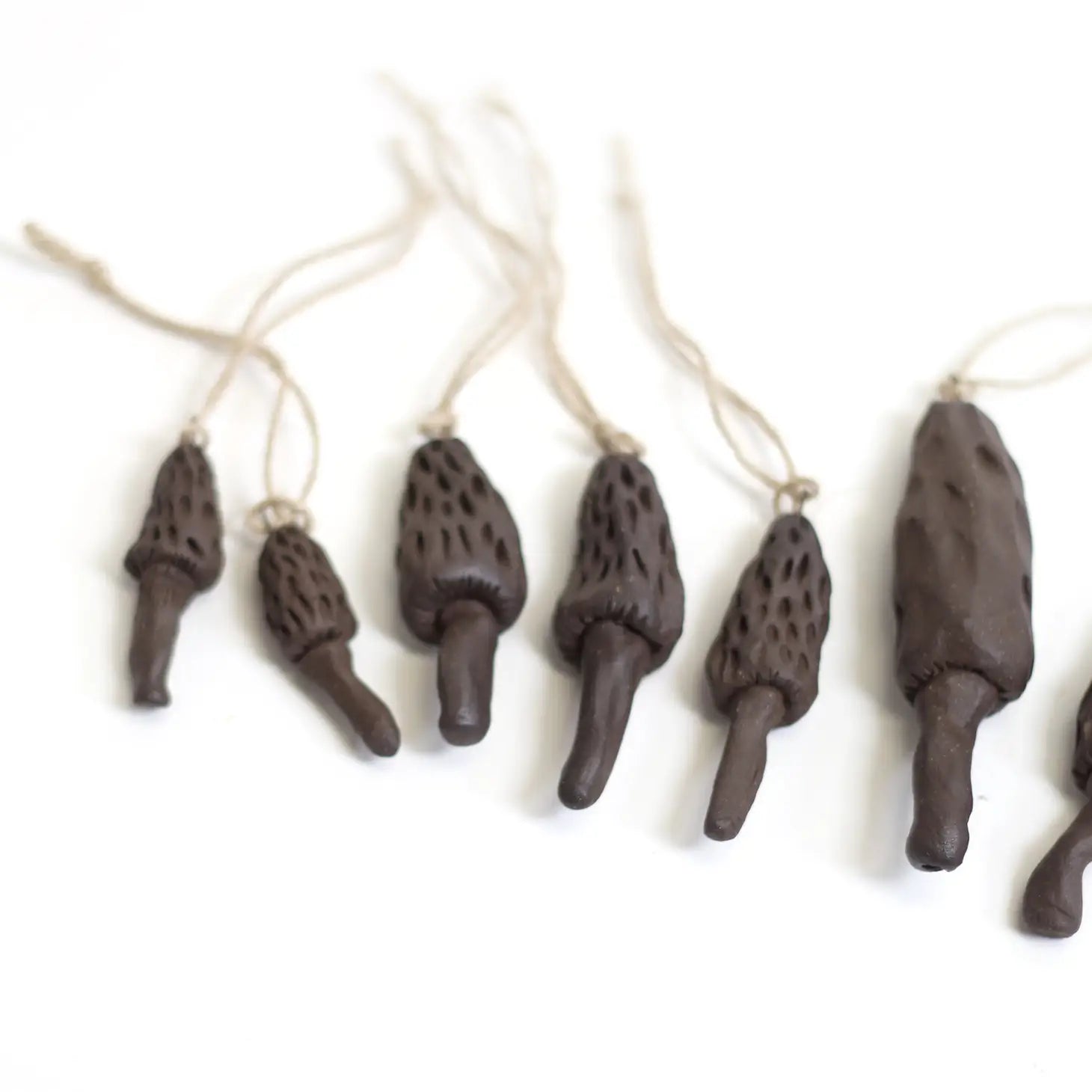 Handmade pottery morel mushrooms are individually sculpted by Gravesco's artists in Indianapolis, Indiana. Each one is completely unique and sizes vary from 1.5" to 2.5".