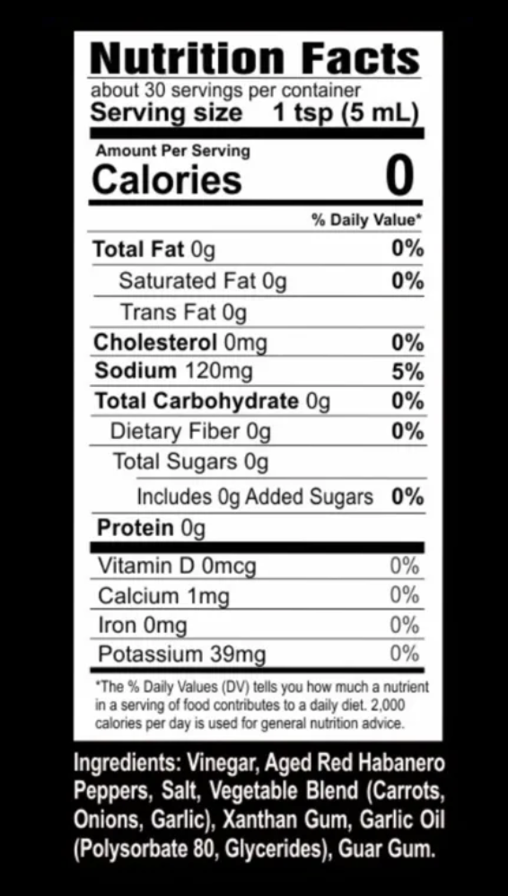 Sharp notes of garlic, fruity habanero pepper and the hint of sweet carrot.