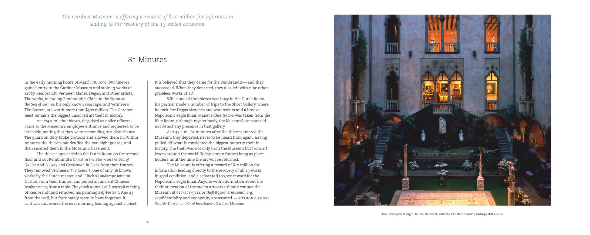 Stolen provides the context to the brazen heist that left the Gardner museum in search of its lost masterpieces. For the first time in twenty-seven years, The Gardner Museum has authorized a book on the daring theft from the Museum of thirteen priceless works of art, including three Rembrandts and Vermeer's The Concert, together worth over $500 million. The Museum is offering $10 million for safe return of all the works; the heist remains the largest unsolved theft in history. In the early morning hours of March 18th, 1990, two thieves disguised as police officers talked their way into the museum, and tied up the night guards.