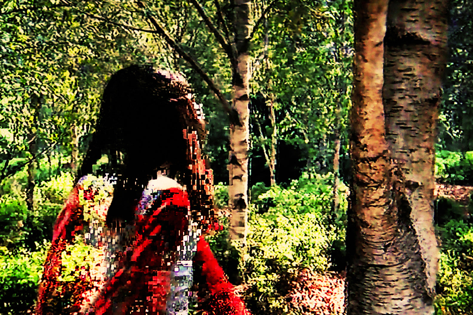 “The photographs in this series register gaps in transmission in the unrelenting traffic of media images. They came from television advertisements during those intervals in which the signal is interrupted and the emitted image breaks up, fragmenting until nearly disintegrating. What remains is a wake of drifting fragments and vestiges of images that retain some trace of that which has already precipitously disappeared. In these photographs, I try to capture and document the digital trail left behind by an image in movement, its ephemeral trajectory from the recognizable to the abstract. From the visual detritus emerge new signifiers that evoke other subjectivities, other discourses, and other more static and contemplative temporalities. On being severed and extracted from their referents, the images are deactivated and emptied of their content and original purpose. In their estrangement, they engender new forms, a new visual syntax created with the intention of disrupting the intended order of representation and mechanisms of persuasion.”